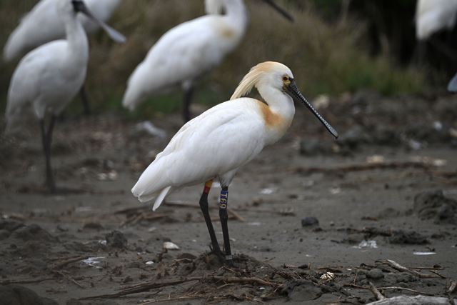 【民正新聞記者:蔡永源,蔡慧茹台南報導】10年前因肉毒桿菌中毒事件獲救的「T69」黑面琵鷺,今年又回到台南度冬,台南市生態保育學會副總幹事黃永豐,持續追蹤下今天又在七股區頂山賞鳥發現牠的蹤跡,而且已經長出漂亮繁殖羽毛,準備北返,吸引許多愛鳥拍攝記錄。