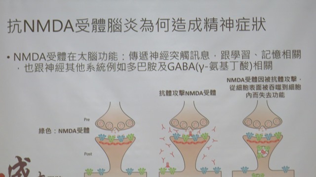 成大醫院小兒部團隊評估,女童在數週內出現多重神經症狀,包括精神異常、語言障礙、動作障礙、抽搐與意識改變,腦部發炎並未找到病原感染證據,高度懷疑為自體免疫腦炎。腦脊髓液檢查確認為「抗NMDA受體腦炎」,後續接受大量類固醇與免疫球蛋白治療。五天後,女童語言表達能力恢復,動作障礙改善,情緒也恢復穩定。出院後門診追蹤,顯示認知與學習能力皆恢復,抗癲癇藥物也完全停用,目前生活與就學一切正常。