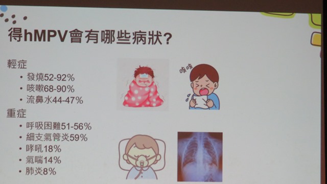 hMPV是一種很常見的呼吸道病毒,主要是飛沫和接觸傳染,可引起輕微感冒到嚴重肺炎,嬰幼兒老人及免疫功能低下者為高危險族群。目前無特效藥及疫苗,治療為支持性療法,預防措施以感染控制為主。
