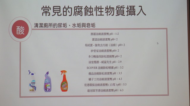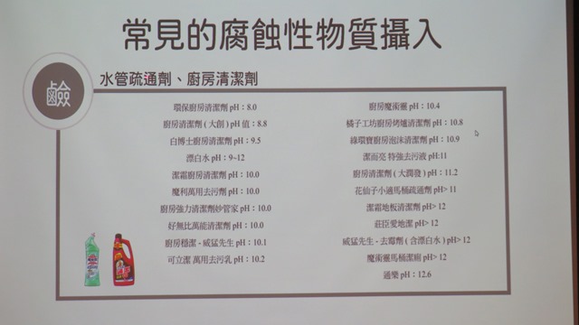 相較之下,強鹼性物質如氫氧化鈉等清潔劑成分會引起「液化性壞死」,這類物質能夠更深入地穿透食道壁,可能導致食道穿孔,進而引發縱膈腔感染等併發症。因此鹼性物質的誤食通常比酸性物質造成更嚴重的傷害。 一般家中,有清潔劑、通樂、除鏽劑等含有腐蝕性成分的產品如果沒有妥善收納,可能增加居家環境中的潛在意外風險。部分產品的包裝設計與一般飲料瓶相似,容易造成誤認。此外,正值青春期且面臨情緒困擾的青少年,可能因為衝動或情緒問題而接觸這些危險物質,在這種情況下攝入的濃度和劑量往往較大,造成的傷害也相對嚴重。