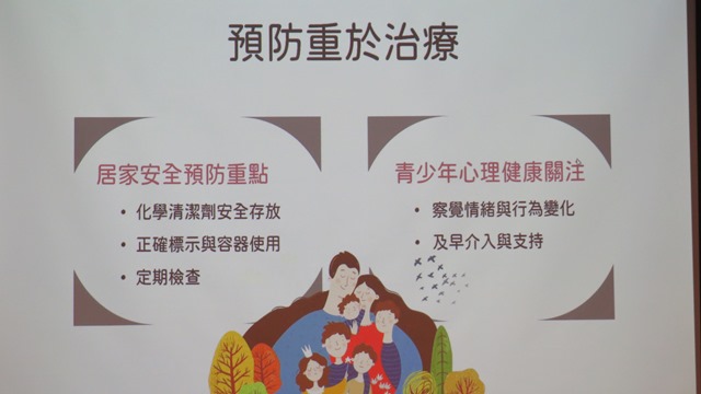 賴醫師強調預防的重要性,在居家安全方面,含有強酸或強鹼成分的清潔劑應妥善存放在兒童和青少年無法接觸的地方,產品標示應清楚完整,且不應使用飲料瓶盛裝化學清潔用品。建議家長定期檢查危險物品的存放狀況。對於青少年族群,心理健康的關注同樣重要。家長和教育人員應留意青少年的情緒變化和行為狀況,當發現情緒困擾或異常行為時,應及時尋求專業協助,並提供適當的支持系統。