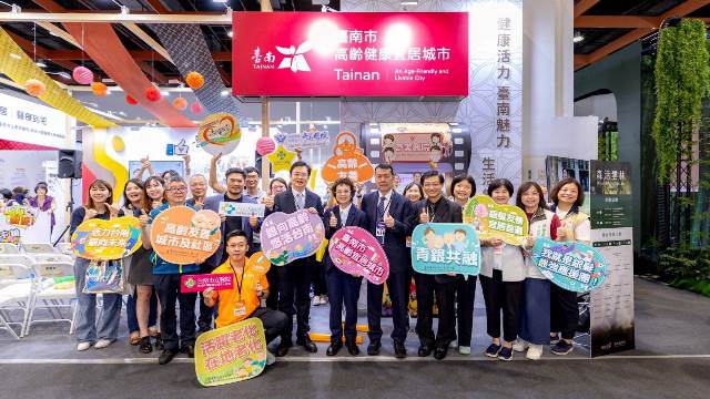 此外本市也於現場設置臺南主題館,規劃動靜、態展區,靜態展示分為四大主題:奇美醫院與安南醫院展出到宅醫療、AI預防中風設備與失智互動桌遊,呈現科技結合健康照護的創新應用;市立醫院與力躍運動團隊展示長期深耕的社區照護模式與互動遊戲;醫師、牙醫師與醫檢師公會則分享深入社區服務的實績;市府團隊整合多局處成果,包含銀髮友善餐廳認證、銀髮衣缽計畫及多元運動課程推廣,讓民眾從體驗中理解高齡健康照顧的多元樣貌。