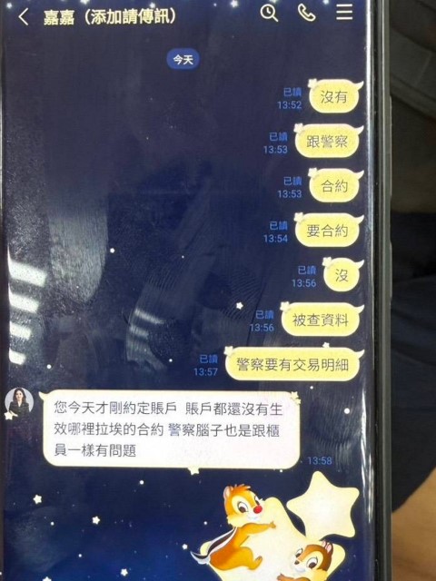 為釐清案情,員警要求曾女出示與「業者」的LINE對話紀錄;不料,對話中的LINE暱稱「嘉嘉」竟立即指示曾女刪除聊天紀錄,甚至出言指稱「警方與行員腦袋有問題」;此一不合理的反應,更加印證了曾女已遭受詐騙。在員警與行員聯手耐心勸說及專業分析下,曾女終於明白自己遭遇了詐騙陷阱,即時停止了約定轉帳的動作;本次合作成功攔阻詐騙金額高達新臺幣200萬元。