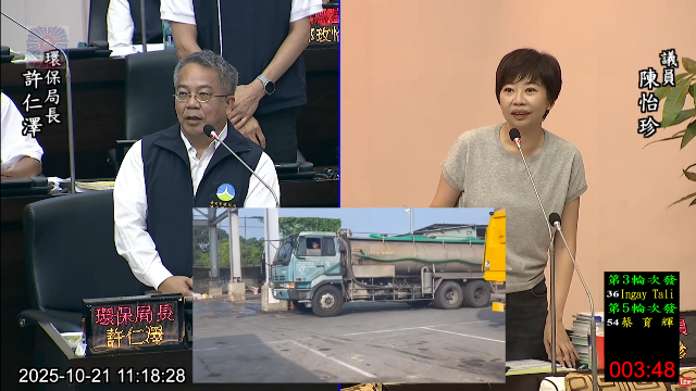 【民正新聞記者:蔡永源,蔡慧茹台南報導】台南市議員陳怡珍今(21)日於市議會質詢時指出,台南市目前水肥清運與處理量嚴重不足,導致業者每日深夜排隊等候進場,清運效率低落,不僅影響市民生活品質,更嚴重衝擊業者生計。她強調,市府應立即啟動跨局處協調,全面檢討水肥處理量能,並加速修復停收中的海興段管線,以解決長期困境。