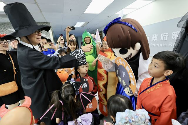 【民正新聞記者:蔡慧茹,林文通高雄報導】「不給糖就搗蛋!」今(21)日高雄市政會議開始前,精心穿戴萬聖節服裝、造型的小朋友及家長,開心與變裝成動畫電影裡隊長造型的陳其邁市長互動,藉此預告市府教育局舉辦的「2025高雄萬聖節」,10月31日至11月2日將在衛武營國家藝術文化中心登場。陳其邁表示市府會做最好的準備,活動將比往年更精彩,來高雄衛武營過萬聖節是唯一選擇,歡迎全國爸爸媽媽小朋友一定要來、不要錯過。