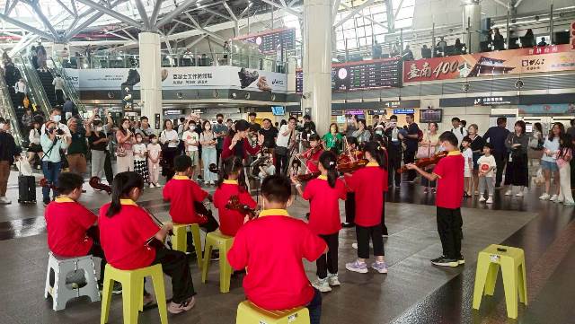 【民正新聞記者:蔡永源,蔡慧茹台南報導】 高鐵台南站24日聚集多位小小演奏家,為旅客帶來藝術驚喜!來自台南市歸仁區「文化國小弦樂團」於車站大廳快閃演奏多首經典名曲,不僅展現平時練習成果,也深刻觸動旅客心弦,贏得熱情掌聲與鼓勵。學童表演後,特別感謝高鐵台南站提供場地,讓他們獲得旅客與聽眾的直接回饋,增添孩子們演奏的信心。