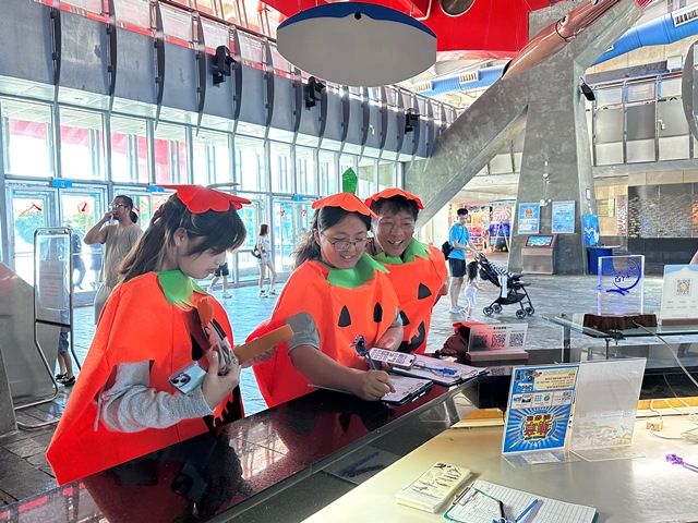 今年萬聖節,屏東海生館邀請民眾一同搞怪,還可以獲得鳳頭海鸚鵡頭帽及吊飾等限量好禮,眾多民眾特別精心打扮,不只有熱門動漫角色,其中更有許多人的童年回憶「超人力霸王」,吸引大批遊客圍觀拍照,成為眾人搶拍焦點,現場笑聲與快門聲不斷。而海生館的飼育員也特別戴上特殊頭套下水餵食,與民眾一起變裝同樂,共度屬於海洋的趣味時光。除此之外,變裝的民眾穿到館內指定禮品店,向櫃檯人員念出萬聖節經典的咒語:「Trick or Treat!」或「不給糖就搗蛋!」即可獲得棒棒糖一支。同時,於海生館粉絲專頁指定貼文下方留下變裝入館打卡照片,更有機會抽中夜宿海生館免費體驗名額。