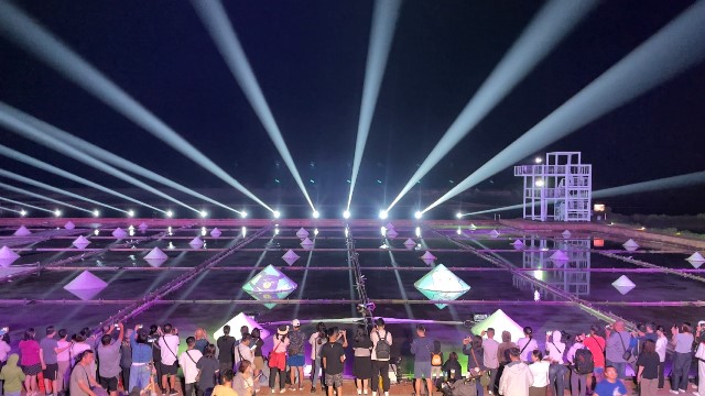 傍晚入夜則轉往北門井仔腳瓦盤鹽田,投入「光雕地景藝術」的沉浸式體驗,百年古鹽田在光影與音樂交織下再現光彩,《胖鯊魚鯊西米》串起整場故事線,帶領大家看見鹽鄉夜色與浪漫,光雕展演於活動期間每週五、六、日晚間 18:30–20:30,每30分鐘一場;並在北門遊客中心安排免費接駁車(17:00–21:00),提供遊客往返展區更加輕鬆、便利。