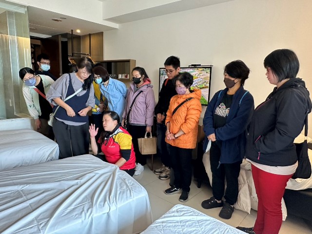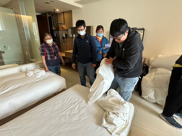 活動首先參訪南科贊美酒店,由飯店人員親自導覽介紹旅宿業的前台接待、客房整備、餐飲服務等工作內容,並分享飯店在招募人才時所重視的職能與服務精神。透過現場導覽與實務操作,學員們對旅宿業的工作型態與服務流程有了更具體的理解。