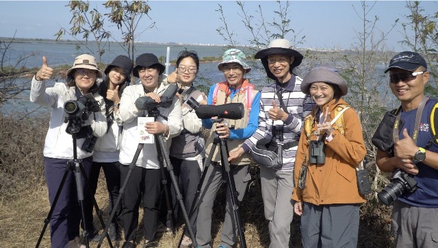 今年雲嘉南管理處特別邀請韓國東方白鸛保育中心館長金秀卿博士(Dr. Kim Su-Kyung)及工作團隊一行4人,以及菲律賓皇室級知名企業負責人Rodger Yu、曾獲《國家地理》攝影大賽第一名的菲律賓著名旅遊攝影大師George Tapan來台參與,2天行程共走訪了7個賞鳥點,向大家分享一開始在布袋濕地即被近距離的盛大鳥況震撼到,接下來在雲林椬梧滯洪池及台南北門、七股等賞鳥點的豐富鳥類生態感到羡慕不己,看到許多家庭大人帶小孩,用簡易的賞鳥設備或手機就可以參加,途中還可以欣賞曬鹽灘地、濕地及瀉湖等多樣地景,在觀光景點還能使用消費券,每個人都帶著滿滿的伴手禮,對於經常到世界各地賞鳥的他們,直呼雲嘉南濱海真的是賞鳥天堂,臺灣的鳥友真的太幸福了。