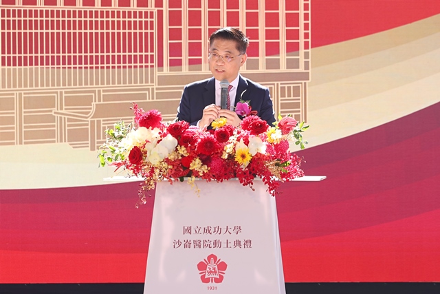 成大沈孟儒校長首先致詞表示,今日是非常榮幸、感動且感恩的時刻。這一刻,對成大而言,是邁向新里程的重要時刻,也是我們把醫學、科技與社會責任結合在一起的具體行動。成大沙崙醫院整體基地約4公頃,未來規劃為一所具備現代化與前瞻性的智慧醫院,預計設置664床,設定目標努力在2030年完工。「我們期盼未來不僅服務沙崙科學園區,更成為南關線地區重要的醫療支柱,照顧沿線廣大民眾的健康。」沈孟儒校長強調,沙崙醫院能夠動土,有許多人的投入與成全,特別感謝成大蘇慧貞前校長、中華民國醫師公會全國聯合會理事長陳相國醫師、行政院李孟諺顧問以及成大重要校友賴清德總統,這4位貴人是成大沙崙醫院得以成形最關鍵的推手。