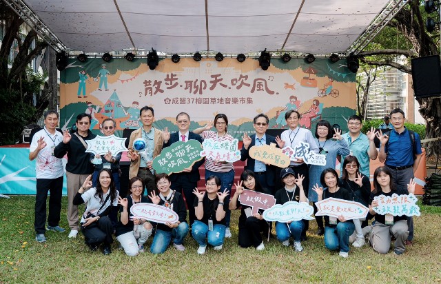 【民正新聞記者:蔡永源,蔡慧茹台南報導】成大醫院於今(20)日下午,在成功大學榕園再度舉辦「散步.聊天.吹風 成醫37榕園草地音樂市集」活動。在冬日暖陽下,以溫暖、放鬆的氛圍邀請同仁與親友度過療癒午後。今年同樣匯集多達百攤市集與多組精彩演出,包括知名藝人卡司與成大醫院「創藝達人」同仁表演,展現醫院豐富多元的人文能量及文化素養。成大醫院也藉此活動,向辛勤付出的同仁獻上最真摯的感謝。