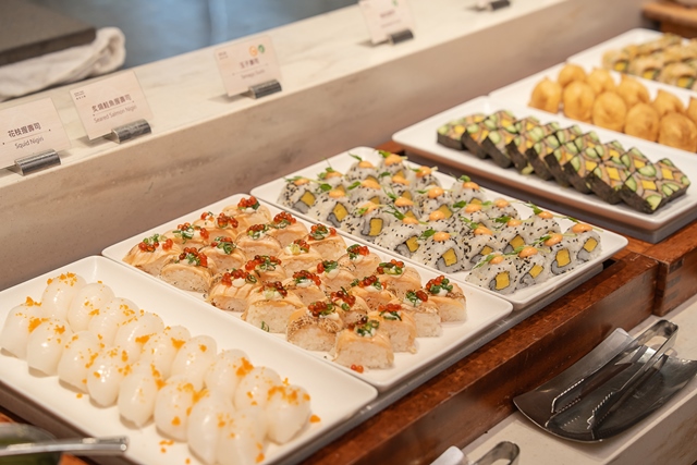假日場次更祭出「松葉蟹」吃到飽與「海膽干貝」、「現切爐烤牛肉」等頂級卡司,用餐體驗更加豪華澎派,搭配冰淇淋機、啤酒機暢飲,滿足你的味蕾饗宴。為了提升用餐品質,榕廷百匯提供「QR Code 現點現做服務」,賓客只需在座位上動動手指,熱騰騰的現做料理即由服務人員送上桌,告別排隊苦候。餐後更可享受琳瑯滿目的精緻甜點櫃,為一餐劃下完美句點。
