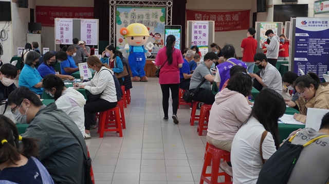 【民正新聞記者:蔡永源,蔡慧茹台南報導】為打造「希望家園」的施政願景,勞工局今(18)日上午在東區和平里活動中心辦理2026「台南好生活 台南呷頭路」第1場中型徵才活動,有台灣矽科宏晟科技股份有限公司、官田鋼鐵股份有限公司、全家便利商店股份有限公司、臺南紡織股份有限公司、興南汽車客運股份有限公司、統聯汽車客運股份有限公司、台灣東特股份有限公司、東信輕金屬股份有限公司、榮眾科技股份有限公司、全聯實業股份有限公司、台灣穗高科技股份有限公司、南科贊美酒店有限公司、小北百貨有限公司、堤維西交通工業股份有限公司、好帝一食品有限公司-牛頭牌、台灣大創百貨股份有限公司–DAISO等27家廠商,提供1,041個工作機會,方便民眾求職面試。