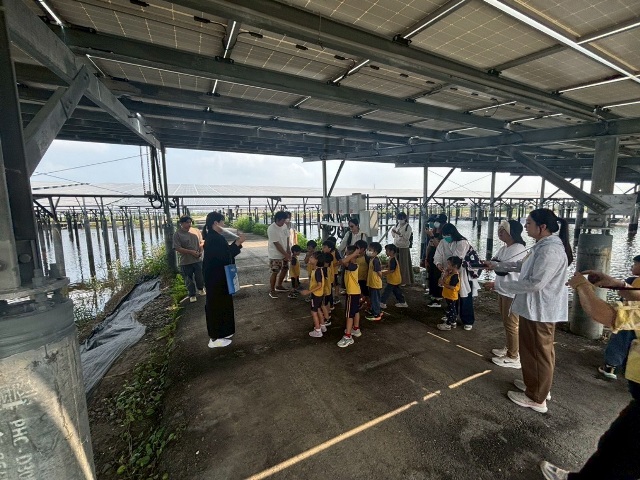 本次兩場活動分別以不同主題進行規劃。首場由大亞電纜美麗家園基金會志工隊走入校園,以「魚塭上的太陽」為題,透過生動影片、互動問答及太陽能科學教具,讓孩子們認識再生能源與環境保護的重要性。第二場則邀請師生實地走訪志光能源七股案場,親身走入漁電共生現場。孩子們在導覽中了解太陽能板如何與養殖共存,並透過文蛤、龍虎斑、白蝦等養殖物種的觀察與互動體驗,感受土地與水產養殖的生命力。現場歡笑聲不斷,也讓孩子們對綠能產生最真實的連結與記憶。