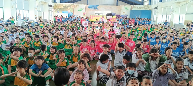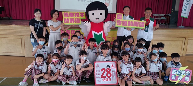 活動後段的有獎徵答時刻,學童們為了拿到小禮物,很踴躍的舉手答題,場面相當熱鬧!宣講活動最後也邀請日新國小吳俐雯校長、臺南市家暴暨性侵害防治中心施清發主任、南台南家扶楊政達扶幼主委及李保良主任等人一起上台和學童們合影並齊喊「數位安全有界限!」,為南台南家扶2026年兒保宣導季的首場大型活動留下一個重要畫面!