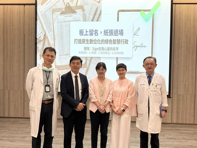 本次競賽內容涵蓋智慧綠色醫院行動、無紙化流程優化、數位管理減碳、AI自動化應用及循環再利用等多項創新方案,不僅展現節能減碳的實踐成效,更突顯同仁從日常業務中發掘永續價值、將創意轉化為具體成果的行動力。例如以數位工具降低紙本與行政耗用、透過流程優化提升資源使用效率,乃至導入智慧科技推動低碳治理,均展現成大醫院以創新驅動永續、以實踐落實ESG的推動成果。