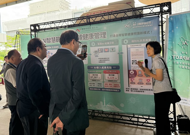 【民正新聞記者:蔡永源,蔡慧茹台南報導】臺南市智慧健康成果再升級!「第一屆AI IMPACT:智慧城市與大南方成果展示」今(28)日在沙崙智慧綠能科學城AI創新應用大樓登場,由國家科學及技術委員會主辦,行政院政務委員、國科會主委 吳誠文 與臺南市長黃偉哲親臨參與。臺南市政府衛生局於展會中展示近年推動的智慧健康成果,包括AI影像輔助分析、健康共照雲整合服務以及智慧醫療管理系統,展現臺南在智慧健康城市的發展成果。